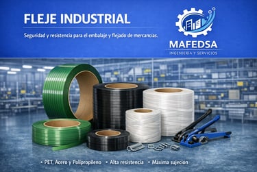 Fleje diseñado para el aseguramiento de mercancías y cargas pesadas, proporcionando máxima sujeción y alta resistencia mecánica.