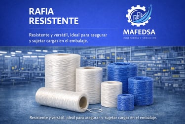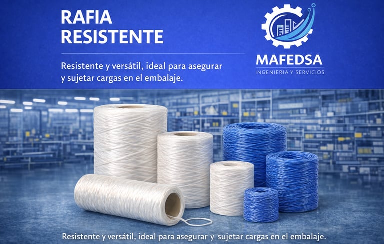 Rafia fabricada con polipropileno de alta resistencia, ideal para el amarre, sujeción y aseguramiento de cargas.